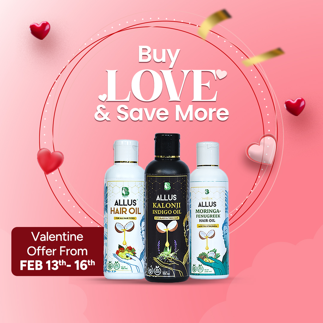 Allu's Herbal offers the finest herbal hair oils to support hair growth and overall hair health, including Allu’s Hair Oil, which tackles dandruff and reduces hair fall while nourishing your scalp; Kalonji-Indigo Hair Oil, which encourages the growth of thick, lustrous black hair through deep nourishment; and Moringa-Fenugreek Hair Oil, perfect for addressing hair thinning and baldness, effectively stimulating hair growth. Shop hair care and hair care products from Allu'sherbal